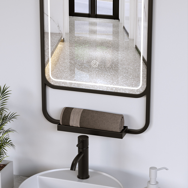 Custom LED Mirror for Hotels and Bars – Anti-fog, Bluetooth, Dimmable, Stainless Steel/Iron Mirror with Storage