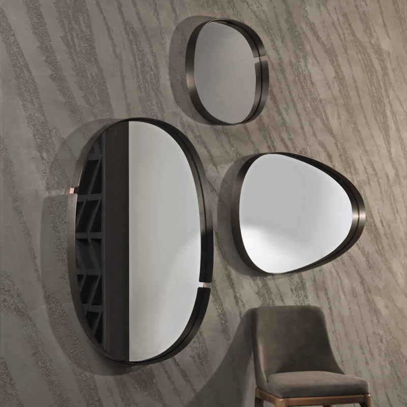 Item number: SM001-Stainless steel series-Irregular oval Tri-color LED lights bathroom mirror